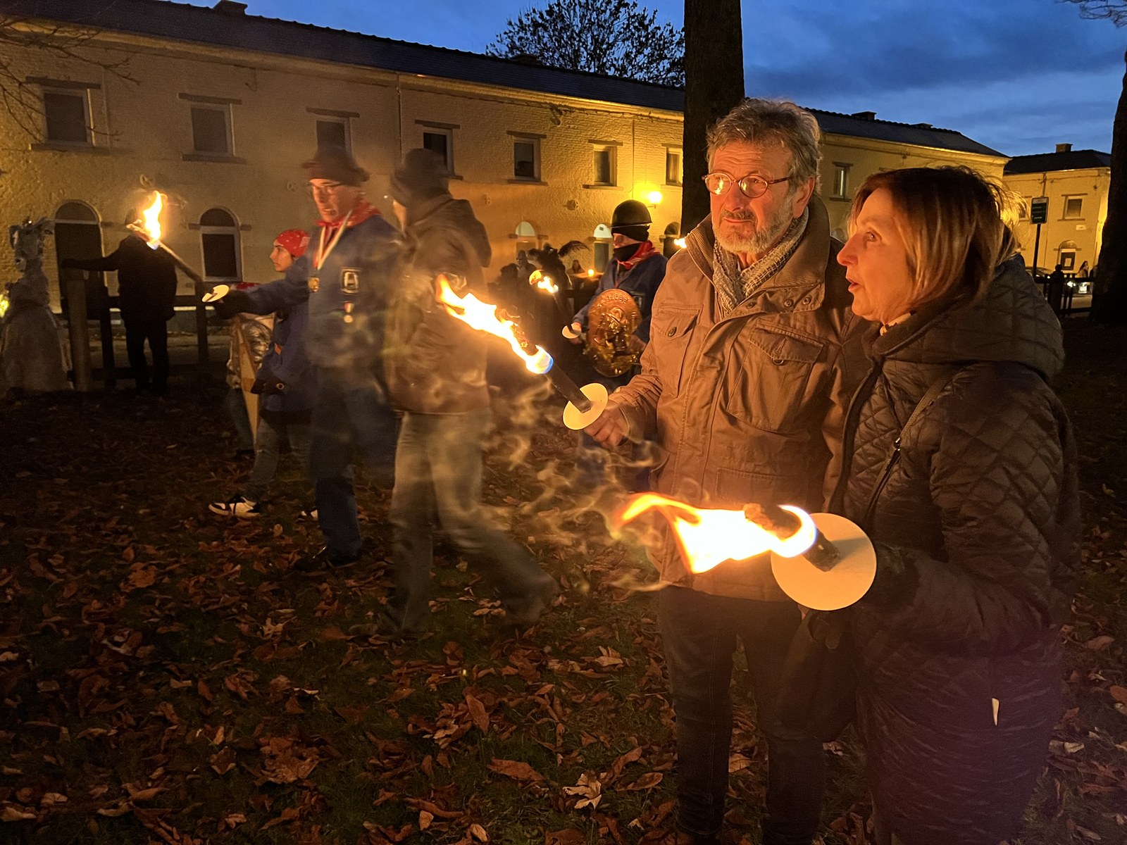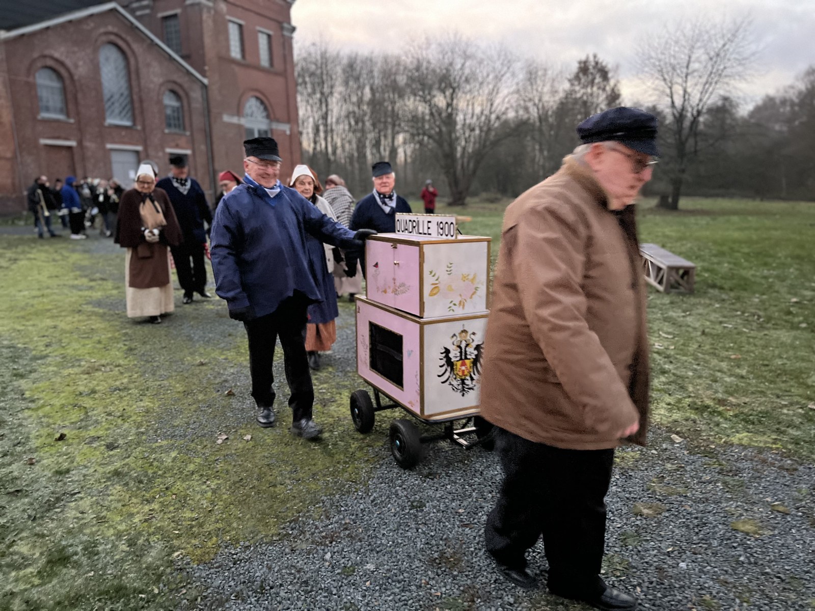 Marche aux flambeaux dans les rues de la cité minière du Bois-du-Luc avec la participation des associations d’anciens mineurs du Centre du Bois-du-Luc et d’Havré, des Regards Vénitiens, du Quadrille 1900 d’Harmignies, de l’école de tambours d’Houdeng, de l'asbl Symbiose et du géant Tchaupine.